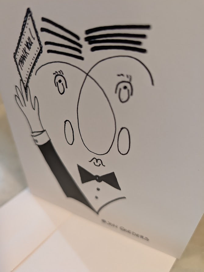 A dapper gentleman in full tuxedo regalia is here to deliver your gratitude in style! This charming greeting card features a sharp-dressed man ready to convey your heartfelt thanks with a touch of humor and sophistication. Perfect for thanking colleagues, mentors, or anyone who deserves a laugh along with genuine appreciation. Let this debonair messenger do the talking—because sometimes the best "thank-you's" come with a side of wit.