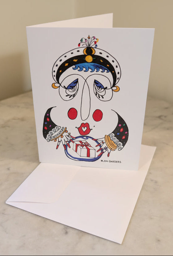 Mystical vibes meet gift-giving excitement with this whimsical greeting card. A fortune teller peers into her crystal ball, spotting something wonderful headed your way—the perfect card for celebrating upcoming surprises, birthdays, or just letting someone know good things are coming. Playful, charming, and guaranteed to spark a smile, this card brings a touch of magic to any occasion.